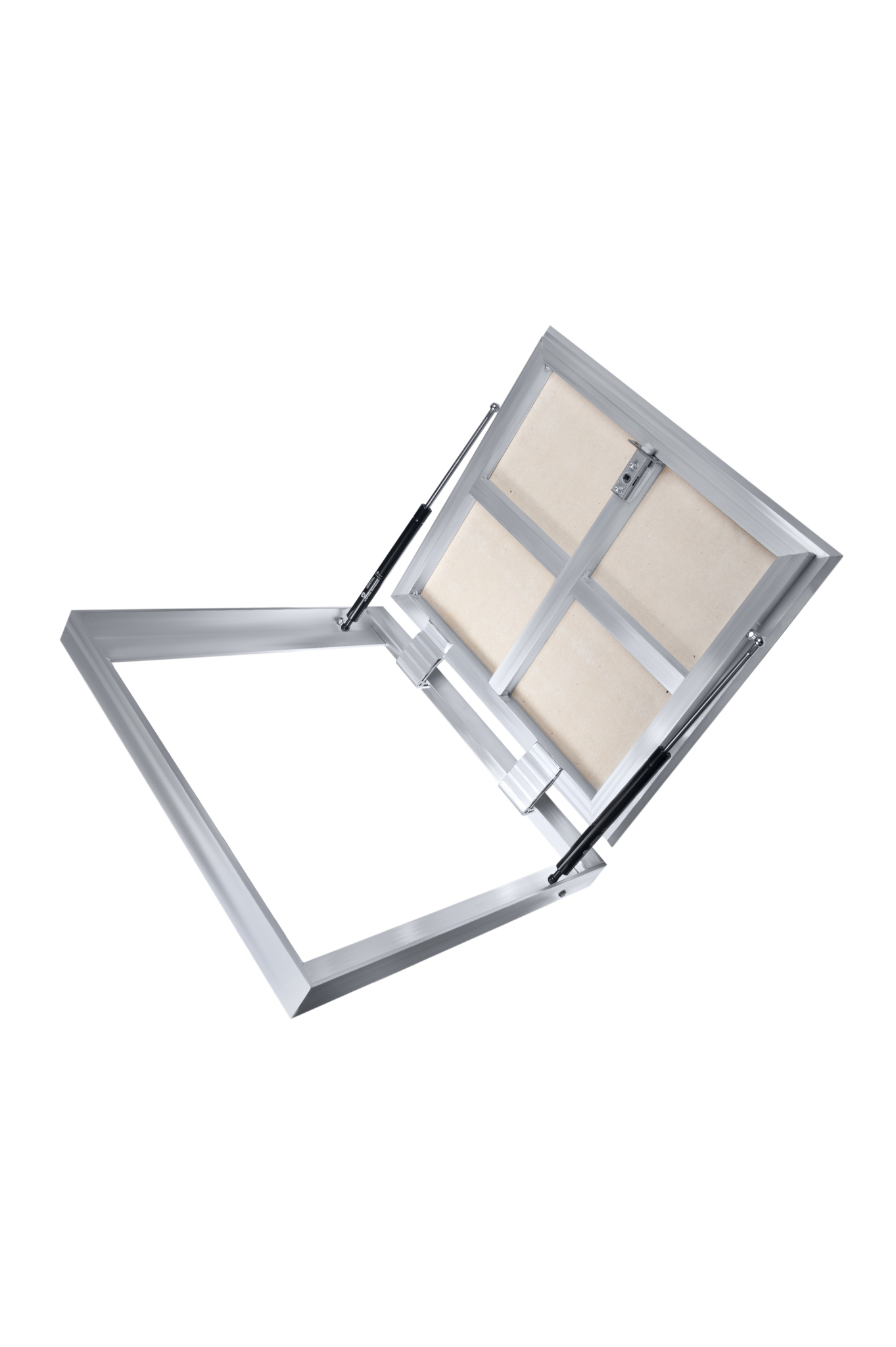 Напольный люк для ревизии, незаполняемый, с амортизаторами и фиксирующими элементами.