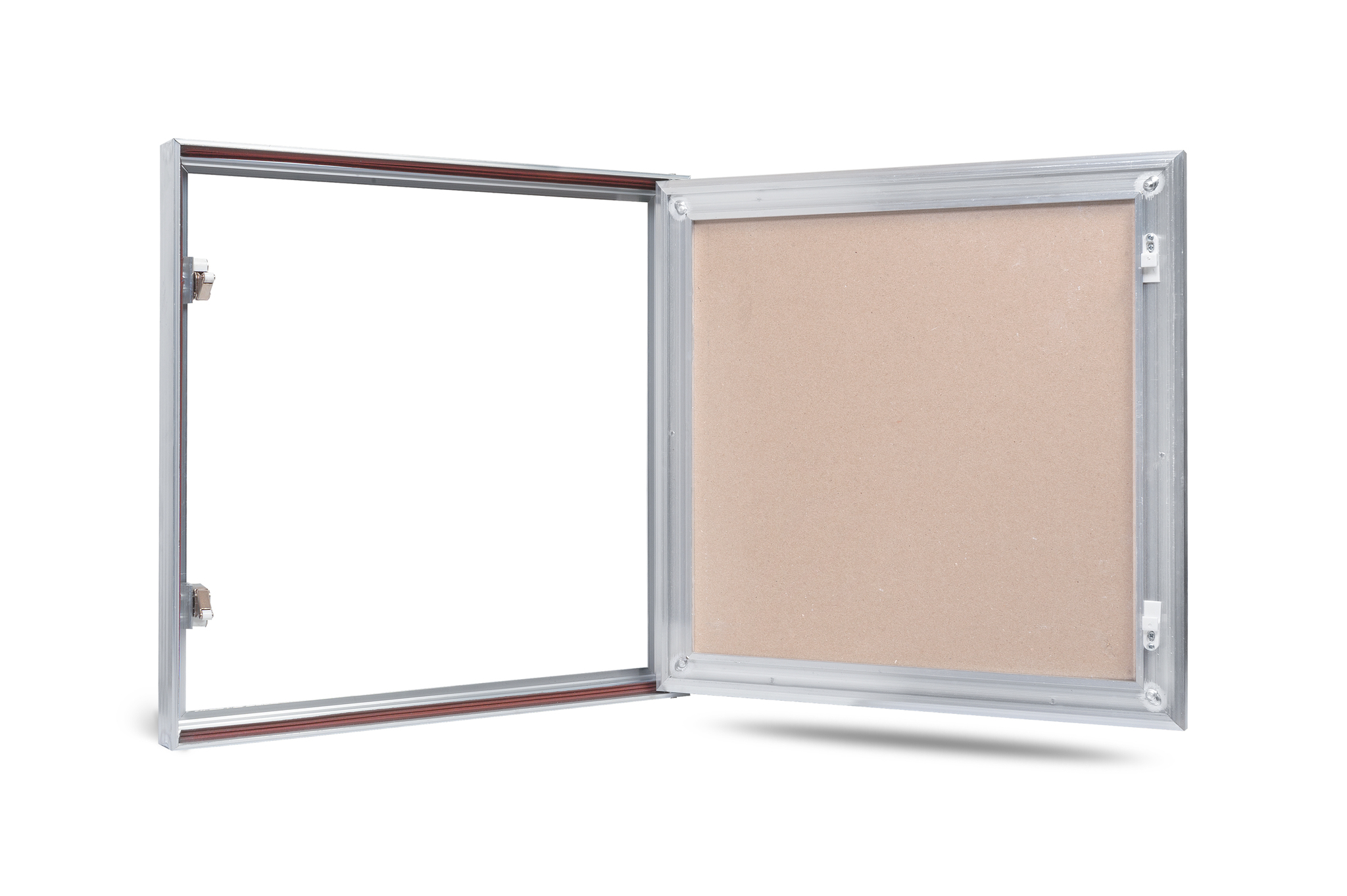 По периметру рамы расположена фаска, что позволяет при установке и покраски дверцы быть люку почти что невидимым, после окончательной отделки месторасположение люка выдает только тонкая аккуратная щель по периметру дверцы.