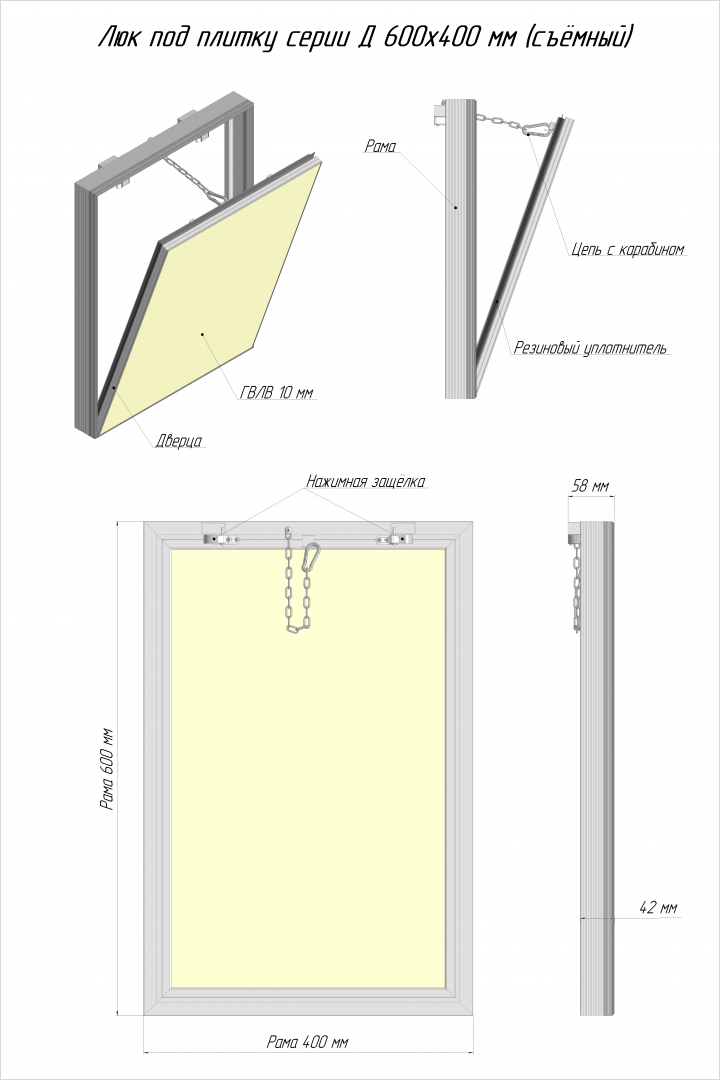 Люк под плитку ЛЮКЕР серии Д-доступ (съёмный) 600x400 мм