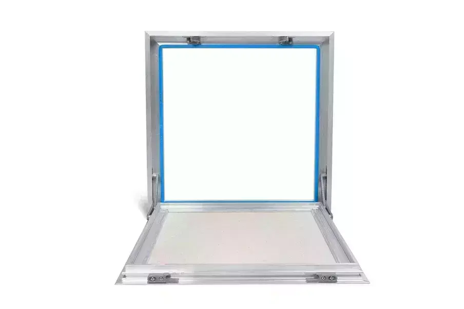 Рама люка для ревизии «Фурор» выполнена из алюминиевого профиля Г-образного в сечении для максимальной жесткости и удобства монтажа в уже подготовленный заранее проем. Дверца люка изготавливается из алюминиевого профиля Т-образной формы, переменного сечения, с выраженными ребрами жесткости, что делает её конструкцию более жесткой. Так как немаловажно исключить перекосы конструкции дверцы, чтобы не допустить деформации наклеенных на нее материалов. В отличие от наших конкурентов, толщина стенок алюминиевого профиля у нас по-прежнему 2 мм и более.