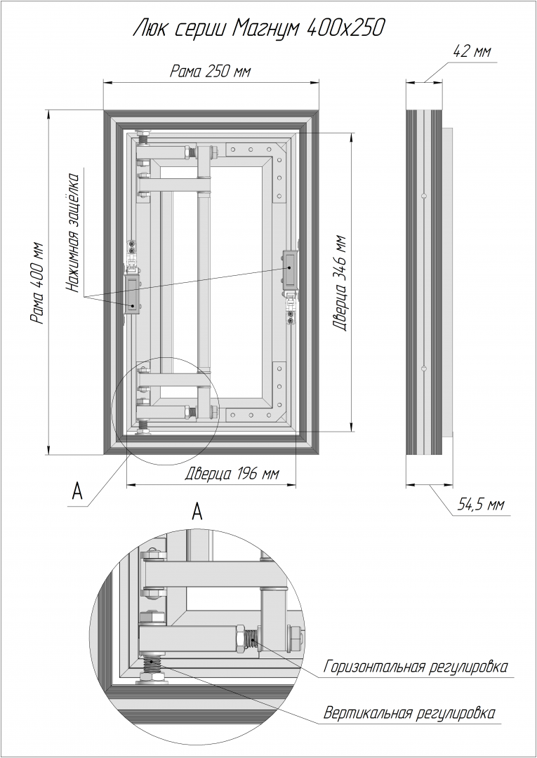 Алюминиевый люк под плитку серии  Магнум -  это аналог люков серии AL-KR, но превосходящий её в жесткости рамы и дверцы люка. Благодаря конструктивным изменениям и дополнительным ребрам жёсткости профиля люк стал еще более устойчив к деформации, а благодаря дополнительным соединительным крепежам внешней рамы повысилась жёсткость рамы, которая способствует простоте монтажа.