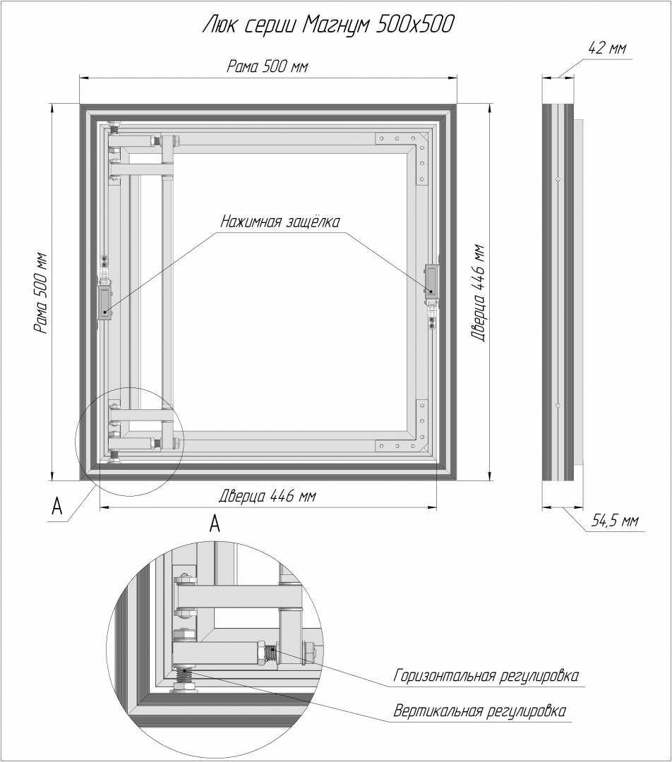 Алюминиевый люк под плитку серии  Магнум -  это аналог люков серии AL-KR, но превосходящий её в жесткости рамы и дверцы люка. Благодаря конструктивным изменениям и дополнительным ребрам жёсткости профиля люк стал еще более устойчив к деформации, а благодаря дополнительным соединительным крепежам внешней рамы повысилась жёсткость рамы, которая способствует простоте монтажа.