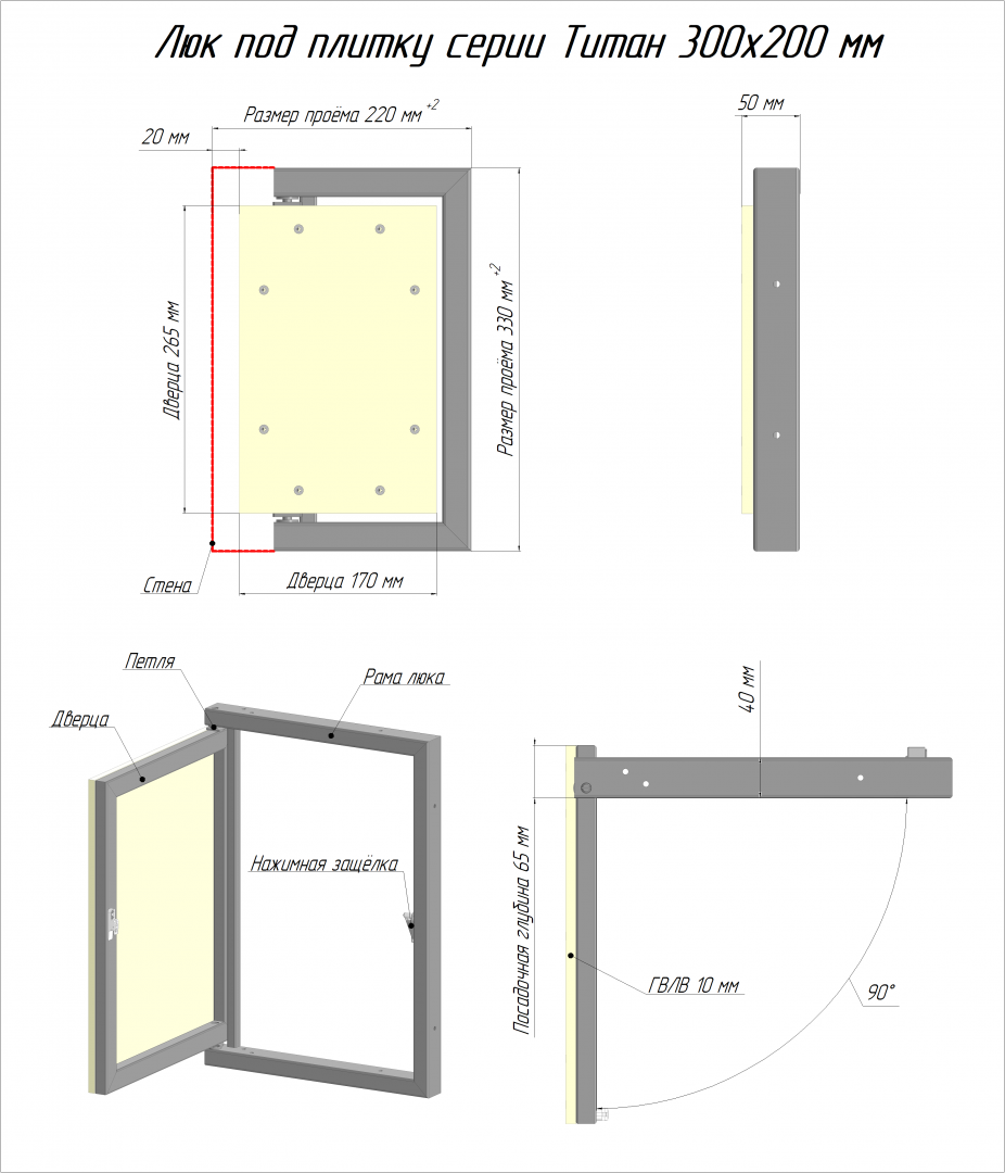 В отличии от стандартных существующих люков с пространственными петлями, люки серии Титан имеют свои особенности в монтаже. Перед установкой и подготовкой проёма обязательно ознакомится с инструкцией по монтажу и паспортом изделия.