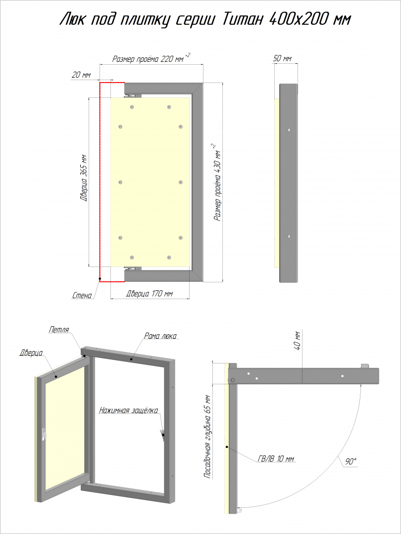 В отличии от стандартных существующих люков с пространственными петлями, люки серии Титан имеют свои особенности в монтаже. Перед установкой и подготовкой проёма обязательно ознакомится с инструкцией по монтажу и паспортом изделия.