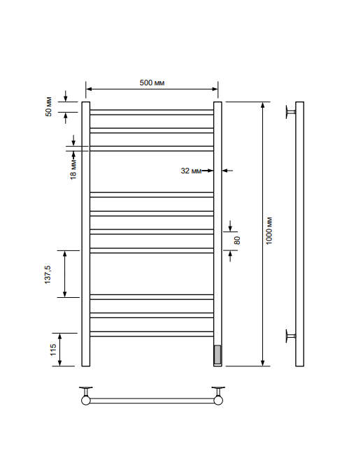 Полотенцесушитель электрический с/т Comfysan Luce EC-10 100/50, MAT GOLD RAL