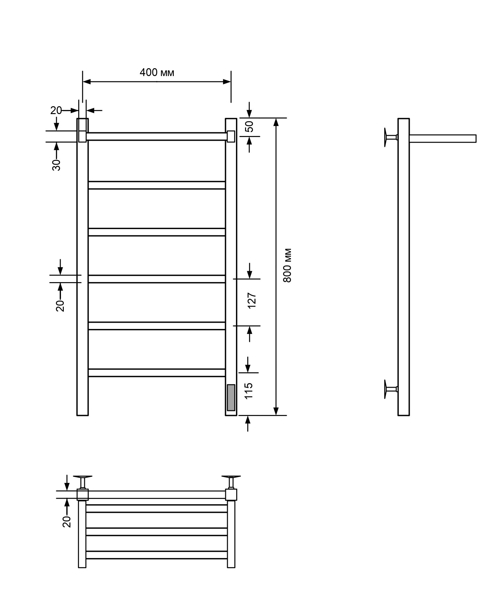 Полотенцесушитель электрический с/т Comfysan Marte-K EC-6 80/40 с полкой, хром