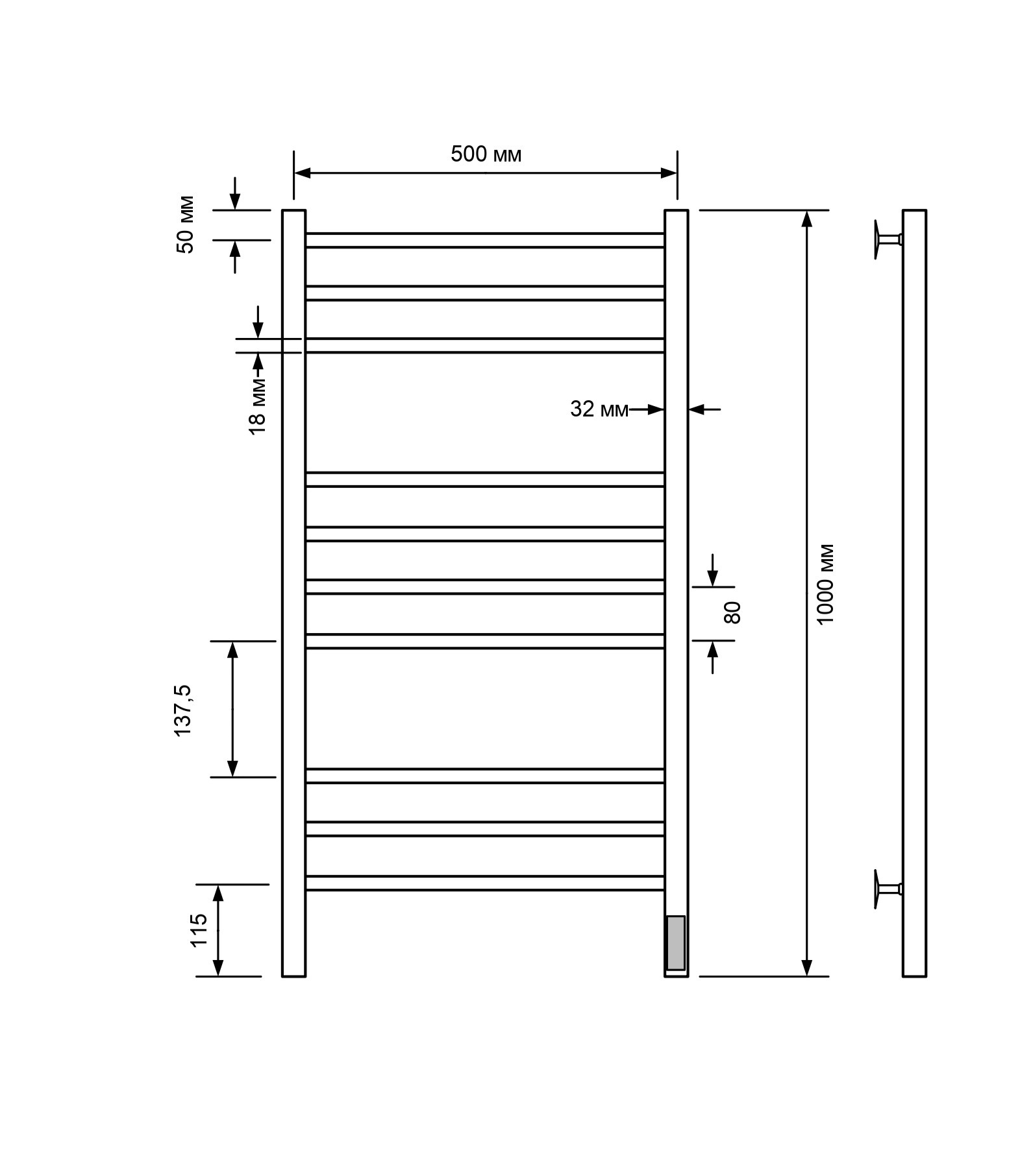 Полотенцесушитель электрический с/т Comfysan Noumi EC-10 100/50, белый