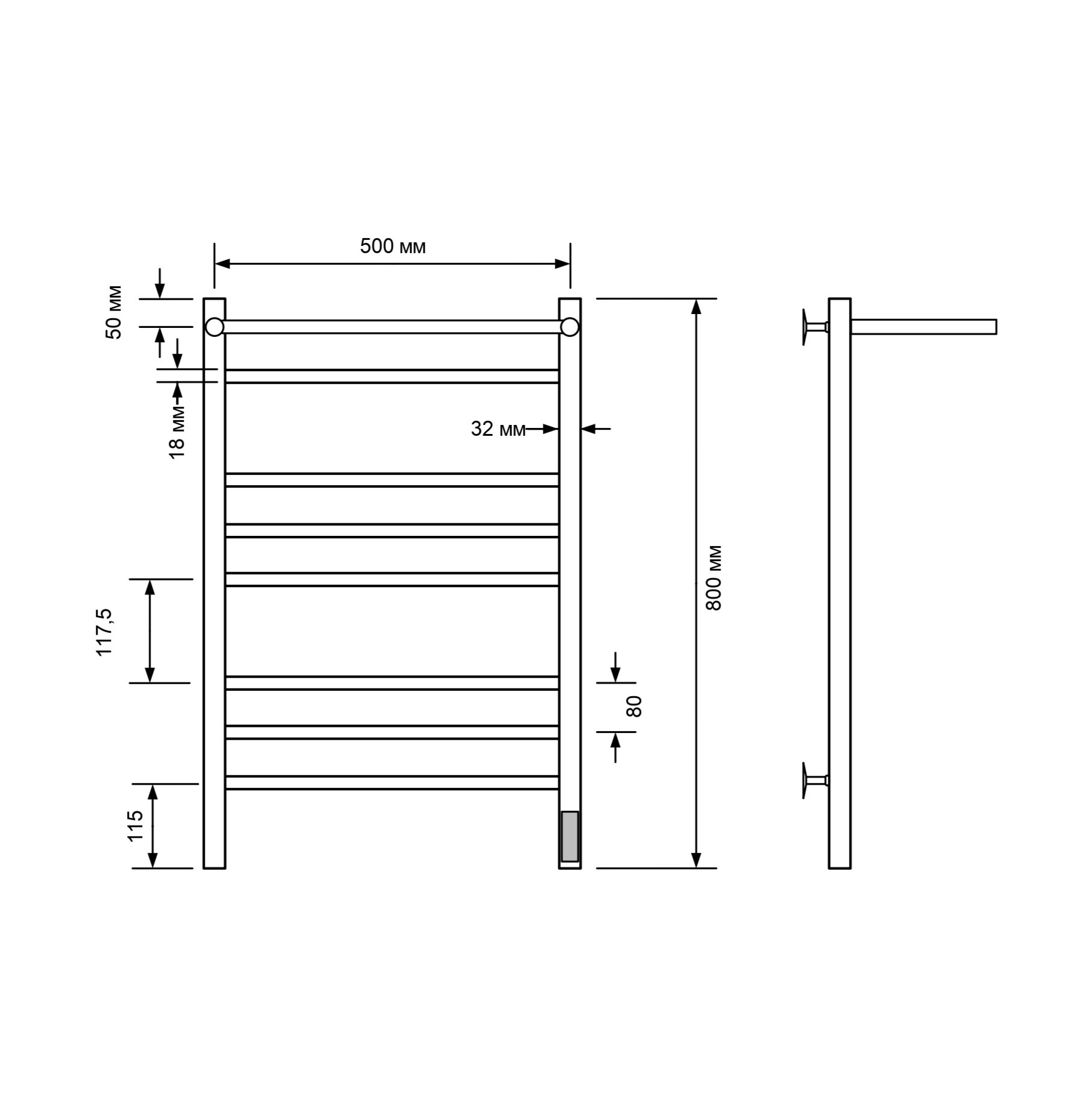 Полотенцесушитель электрический с/т Comfysan Noumi EC-8 80/50 с полкой, черный