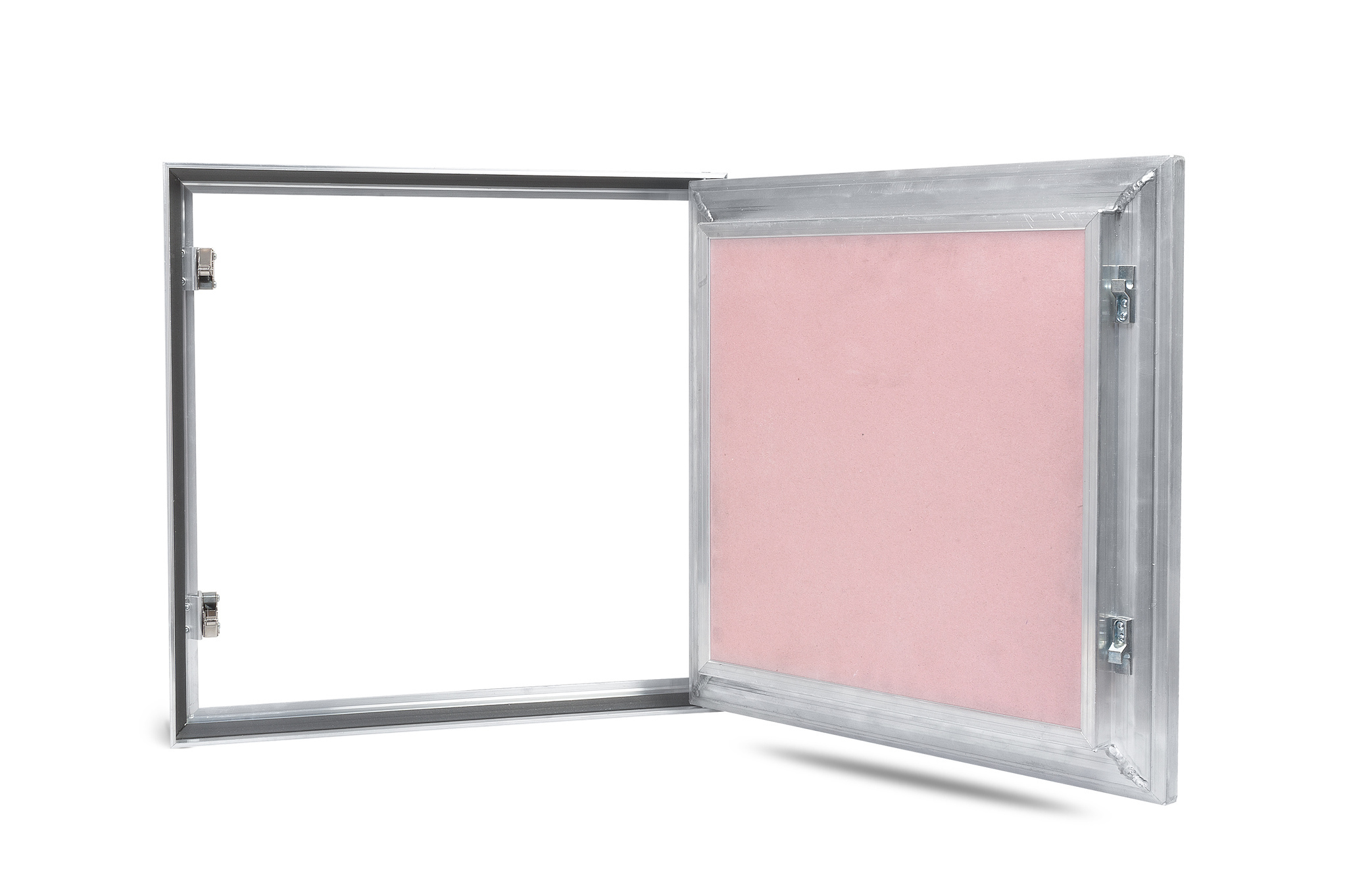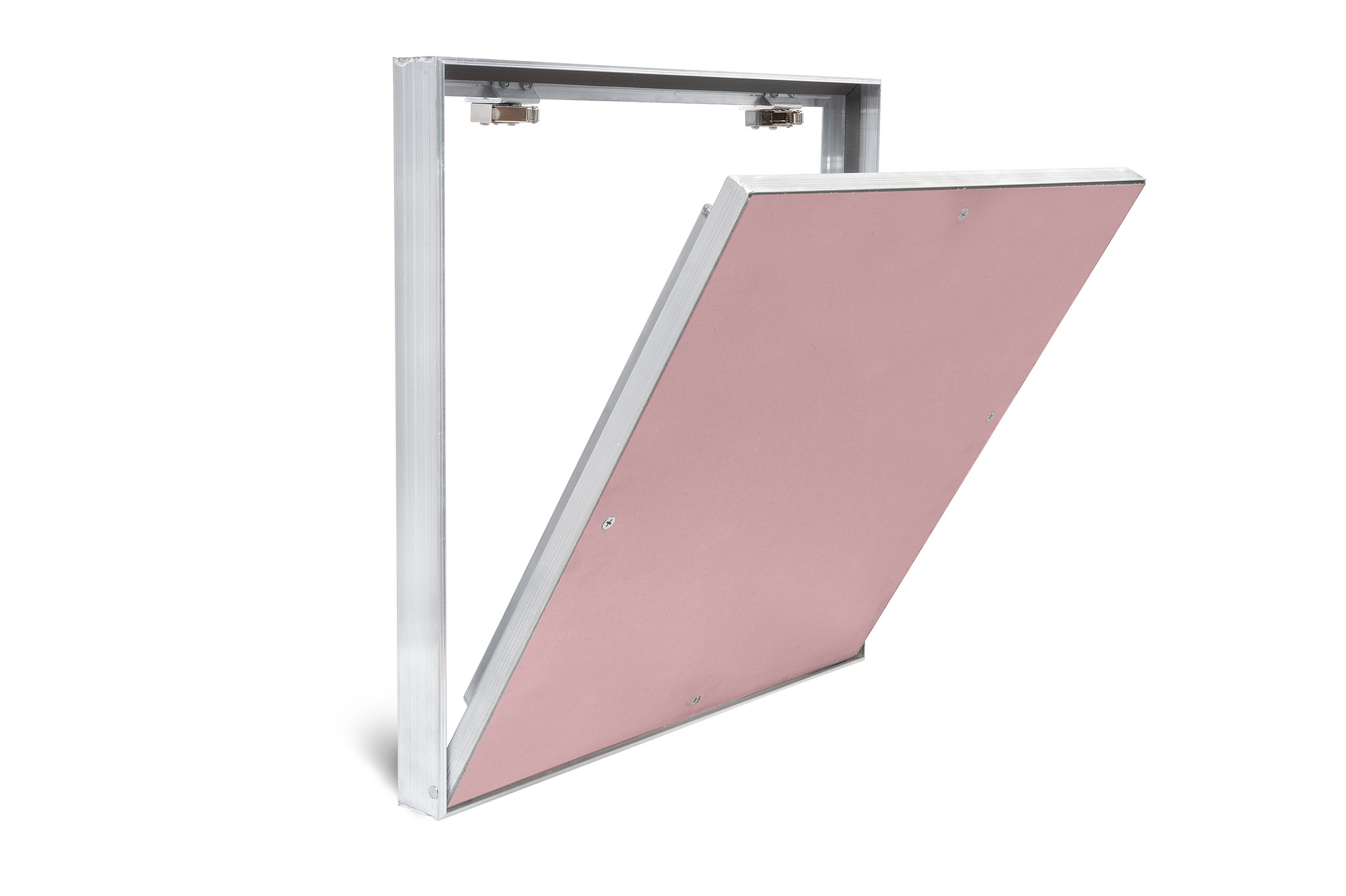 Металлическая потайная петля скрыта в алюминиевом каркасе рамы и не мешает установке люка в уже подготовленный проем.