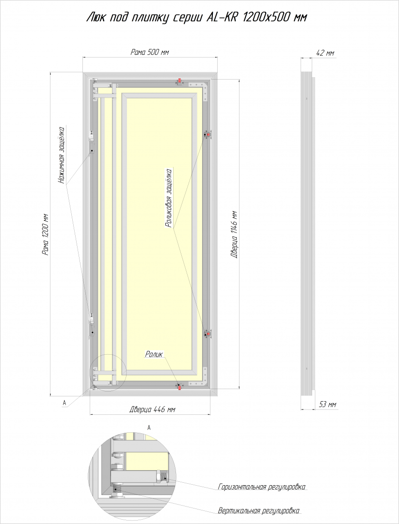 Люк под плитку ЛЮКЕР серия АЛ-КР (алюминиевый) 1200х500 мм