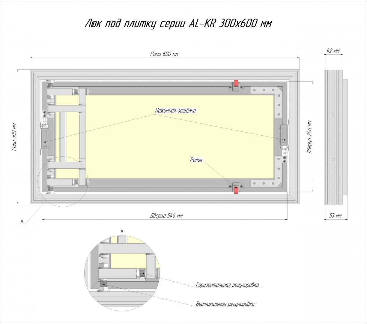 Люк под плитку ЛЮКЕР серии АЛ-КР (алюминиевый) 300x600 мм