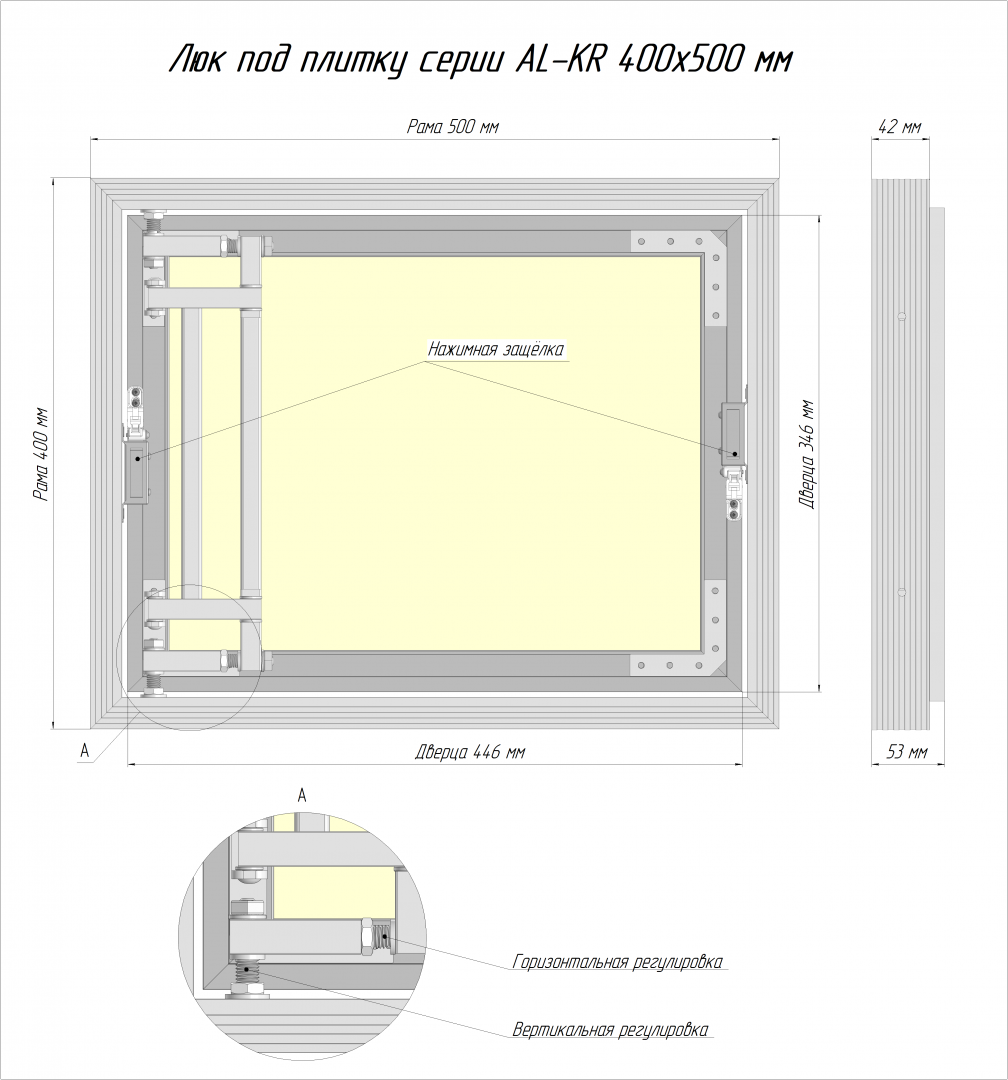 Люк под плитку ЛЮКЕР серии АЛ-КР (алюминиевый) 400x500 мм