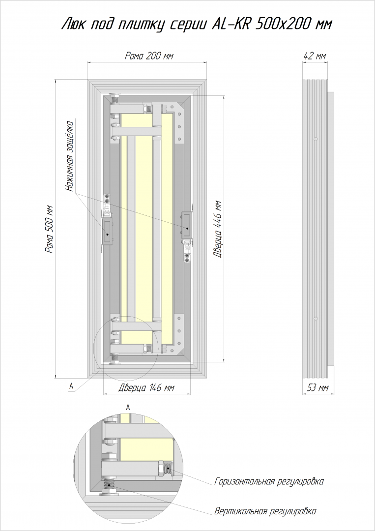 Люк под плитку ЛЮКЕР серии АЛ-КР (алюминиевый) 500x200 мм