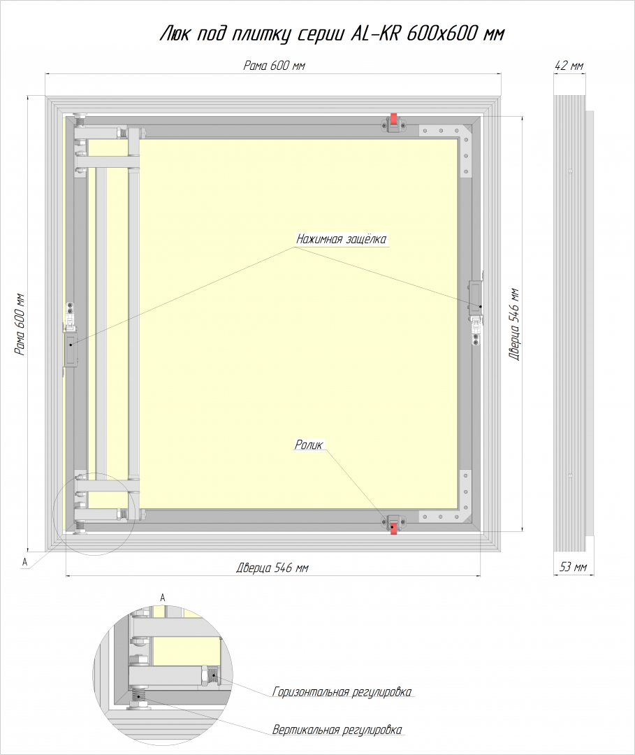 Люк под плитку ЛЮКЕР серии АЛ-КР (алюминиевый) 600x600 мм