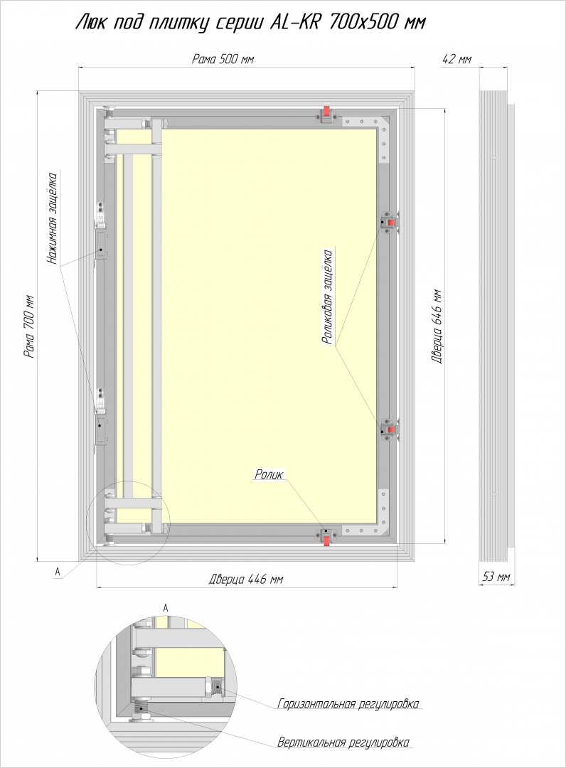 Люк под плитку ЛЮКЕР серии АЛ-КР (алюминиевый) 700x500 мм