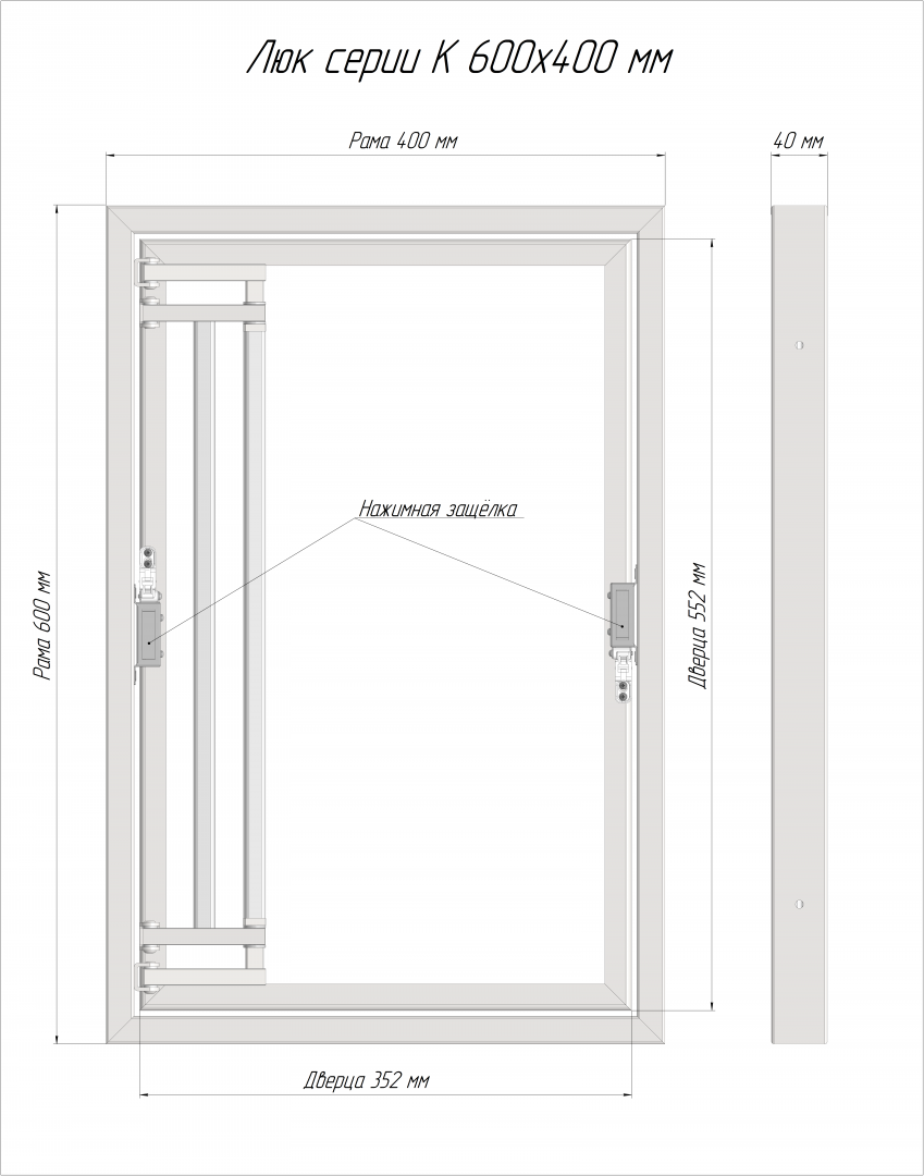 Скрытые люки под плитку серии K (сталь / нажимной) 600x400 мм